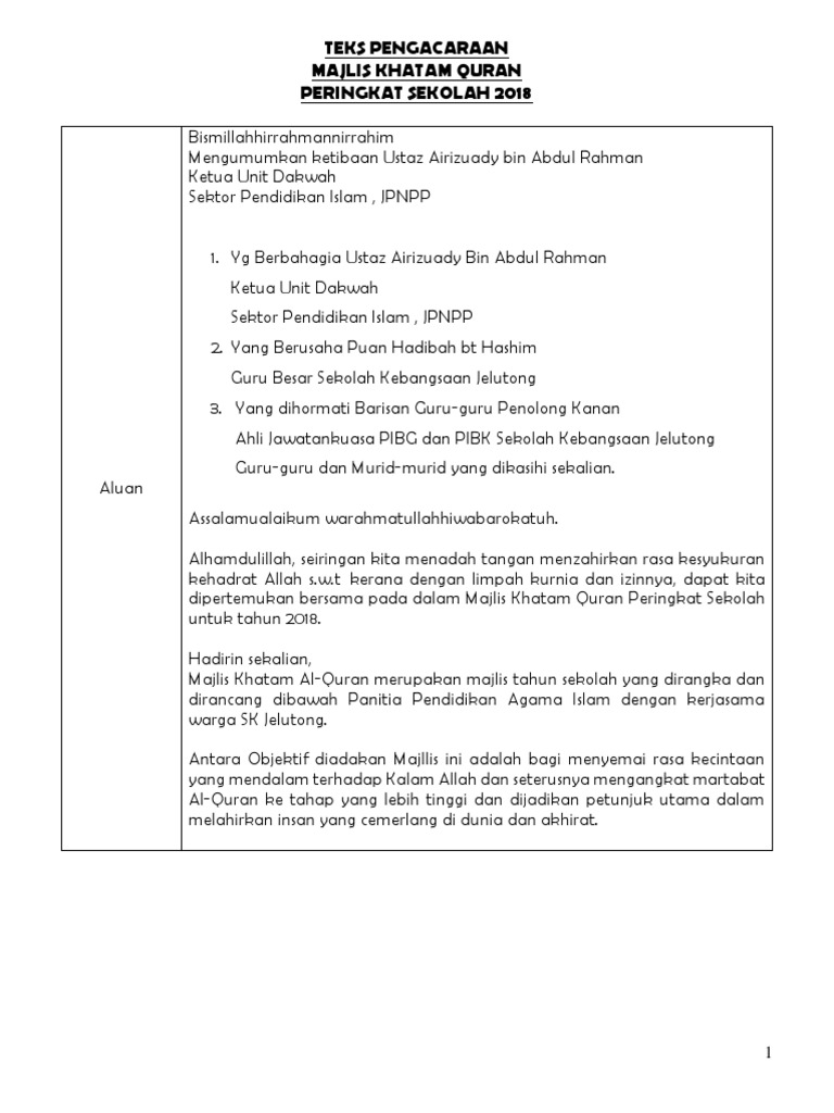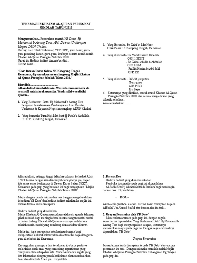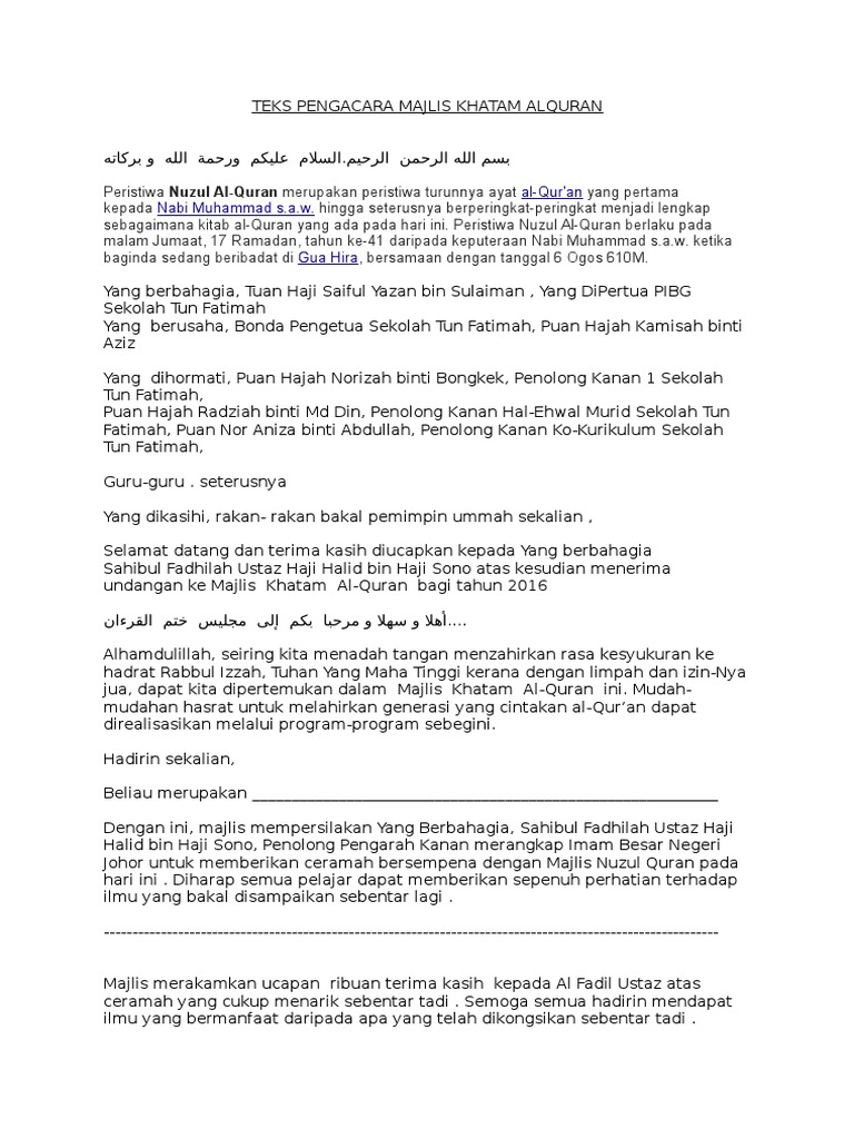 Teks Ucapan Untuk Majlis Khatam Al Quran Pdf