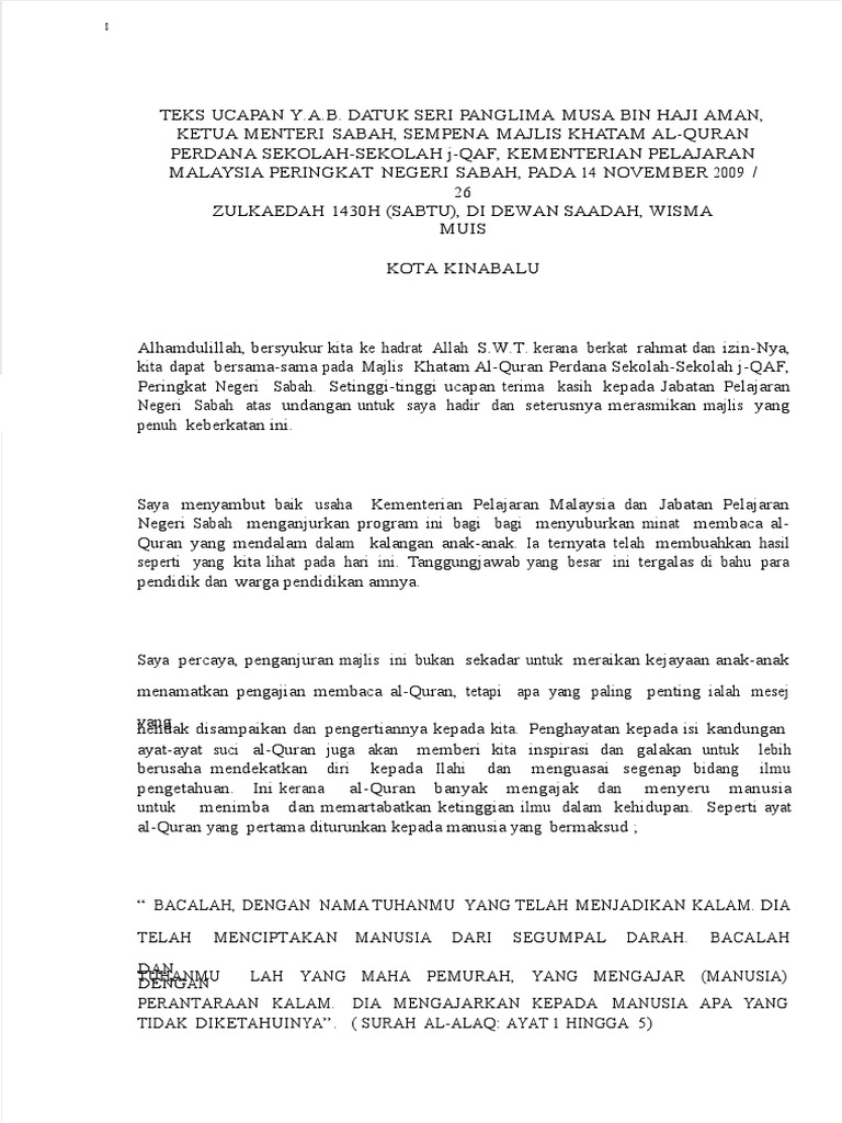Teks Ucapan Majlis Khatam Al Quran Pdf